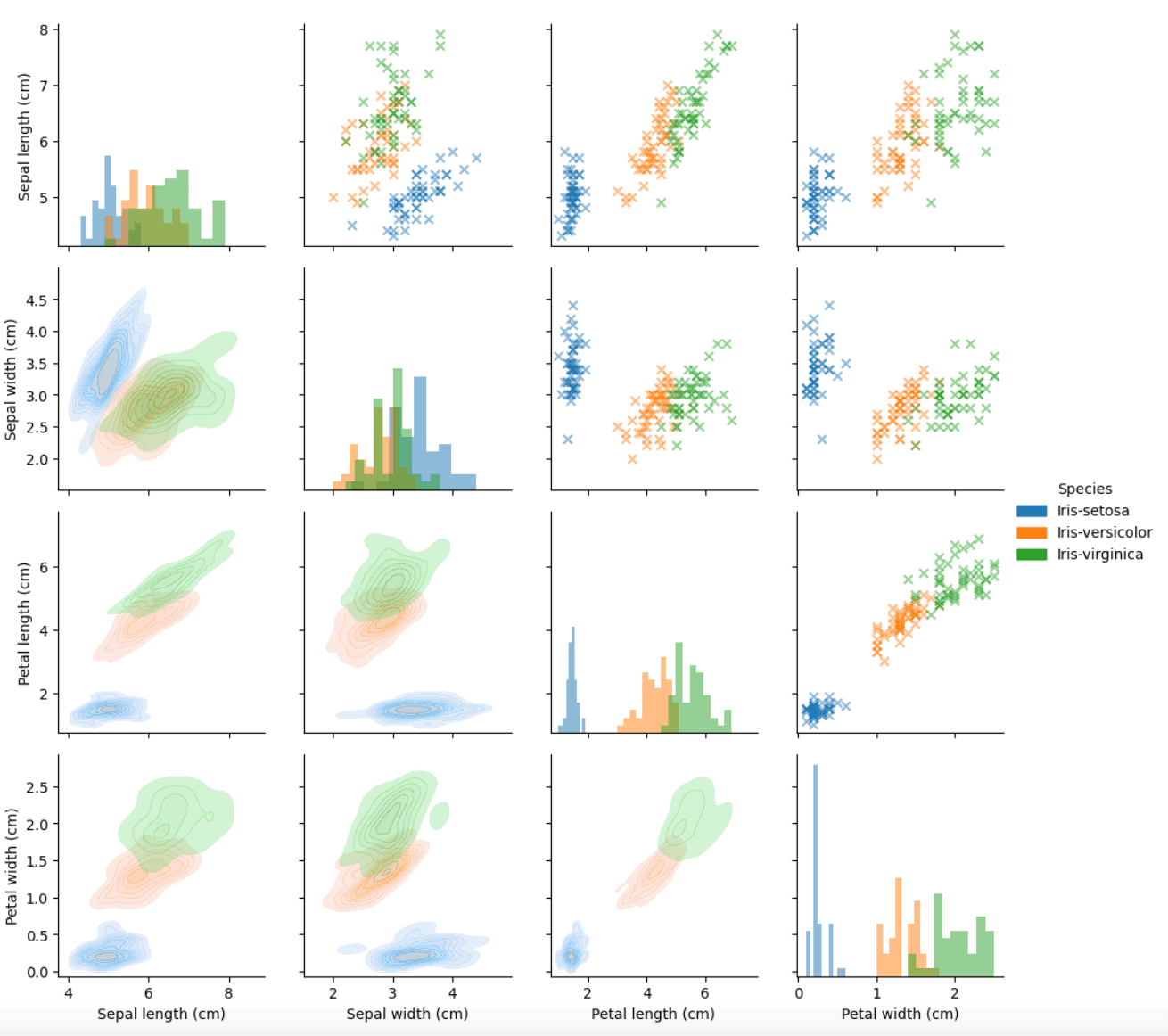 In this tutorial, we'll analyze the Iris dataset, collected in 1936 by the American botanist Edgar Anderson and made famous by statistician Ronald Fisher. The Iris dataset is a basic example of machine learning because it contains three classes of observation: one class is straightforwardly linearly separable from the other two, which can only be distinguished by more sophisticated methods.